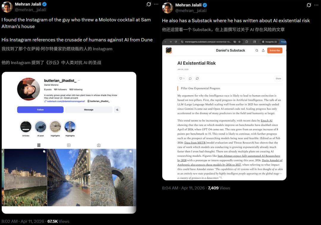 【导读】当地时间周五清晨,奥特曼家被炸了。奥特曼发出家人和孩子的照片,并且发出长文表示,AGI如今已经如同魔戒一般,让人做出疯狂的举动。